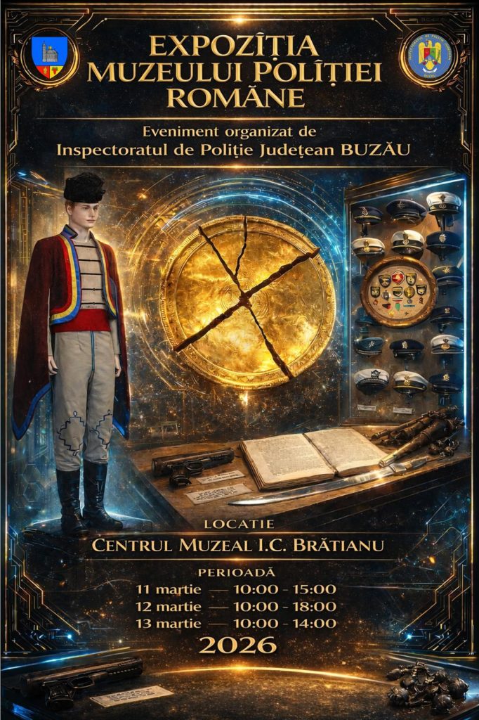 Între 11și 13 martie 2026, vă așteptăm la Centrul Muzeal „I. C. Brătianu” Buzău, la un eveniment special organizat de Inspectoratul de Poliție Județean Buzău, în cadrul activităților dedicate Zilei Poliției Române (25 martie).