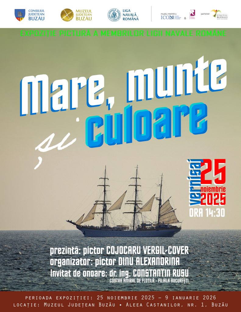 Muzeul Județean Buzău în colaborare cu Liga Navală Română – Filiala București, prin Cercul de Arte Vizuale „Flotila Albastră”, organizează expoziția de artă plastică „Mare, Munte și Culoare”. Autorii lucrărilor, un grup recunoscut de artiști plastici, printre care și membri ai Uniunii Artiștilor Plastici din România, expun constant atât în țară, cât și în străinătate. Expoziția aduce în prim-plan lucrări inspirate din peisajul românesc, precum și creații ce pornesc de la viziunea marilor maeștri asupra specificului natural și național al României.